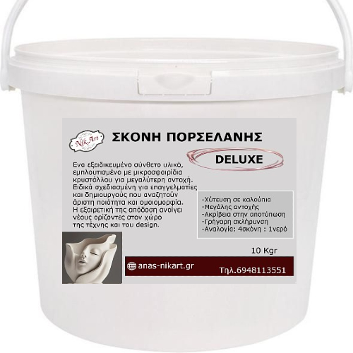 Η σκόνη πορσελάνης Deluxe NikArt, ένα εξειδικευμένο σύνθετο υλικό, εμπλουτισμένη με μικροσφαιρίδια κρυστάλλου για μεγαλύτερη αντοχή ξεχωρίζει για την ανθεκτικότητά της, καθιστώντας την ιδανική για την κατασκευή ανάγλυφων αντικειμένων.